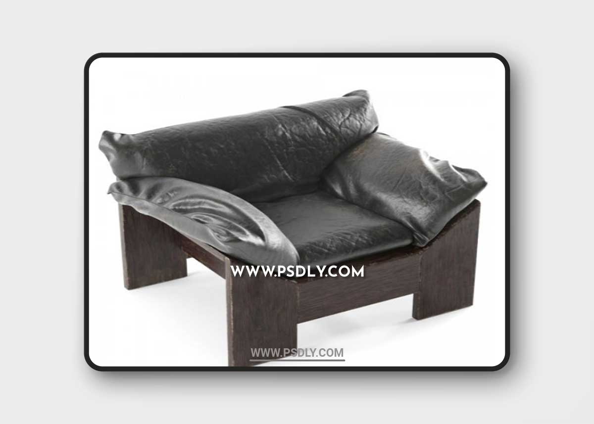 Leolux Dutch Oak Leather Chair 1970s 3D Model
