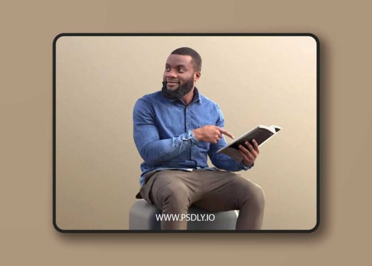 DOWNLOAD LINK: Black man sitting reading pointing 3D model