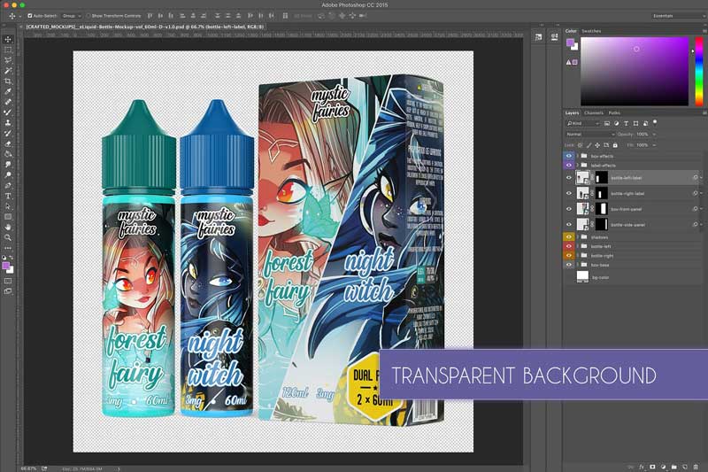 Introducing The Creativemarket eLiquid Bottle Mockup v. 60ml-D 4081178. Volume 60ml-D || Premium quality mockup for dual 60ml pack for 2 vape e-juice bottles and their box, which is carefully created after Chubby Gorilla® v3 unicorn bottle. This mockup offers a wide range of customization such as the lid and bottle colors as well as glossy and semi-glossy reflections.