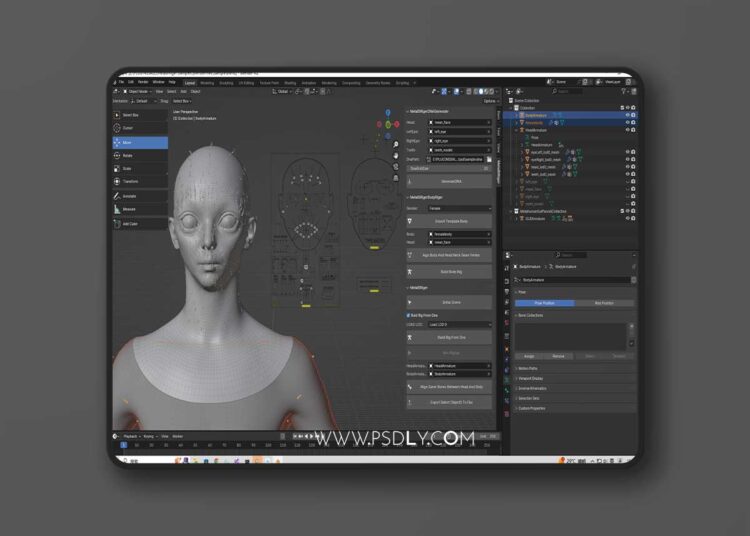 Currently, most tools for creating Metahuman bindings on the market are for Maya. Metablriger is a Blender plugin that helps users quickly create Metahuman bindings and serves as a substitute for existing Metahuman binding tools. Metablriger is easy to install and doesn’t rely on other plugins. It supports directly generating DNA files from the mesh of the Metahuman facial topology and loading DNA files in Blender to create facial rig driven by controllers. It also allows users to modify facial corrective shapekeys for better control over facial shapes. It can alse rig cloth and rig any topology model to metahuman!