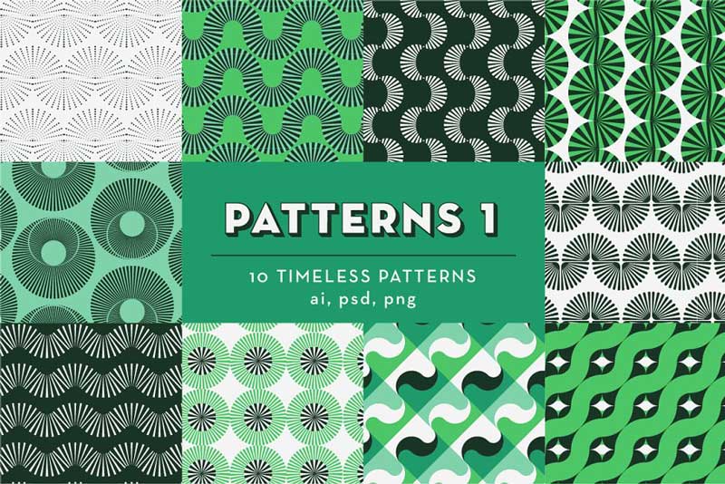 The PATTERN collection combines the aesthetics of art deco, modernism, vintage, and contemporary graphic design in a timeless way, suitable for corporate identity, invitations, stationery, apparel, packaging, Webdesign.