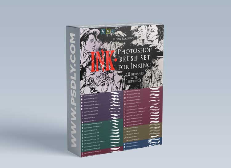 ArtStation – INK 40 Photoshop Brushes for Inking – by Eldar Zakirov