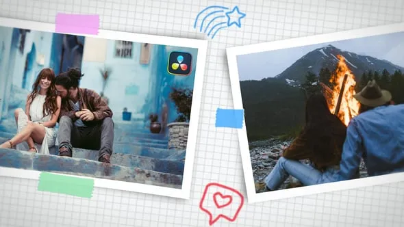 This DaVinci Resolve macro features fantastic-looking animated photo scrapbook transitioning effects. A wicked way to enhance the look and feel of your slideshows, family films and upcoming events videos. Impress your audience with this animated DR macros. Download it now! No plugins are required. Up to 4k, any duration and framerate.