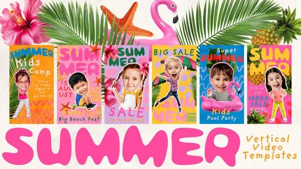 - 6 Vertical Video Templates: Designed specifically for summer-themed children’s events and sales promotions.