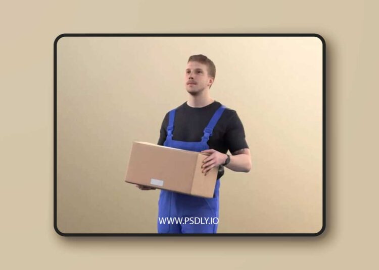 DOWNLOAD LINK: Worker Delivering Cardboard Box Goods 3D model